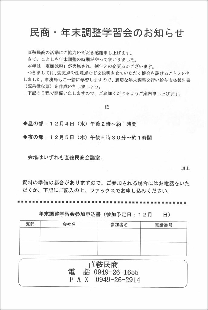 年末調整学習会のお知らせ